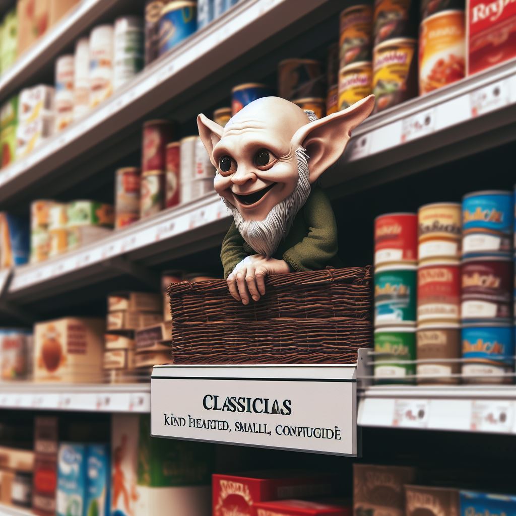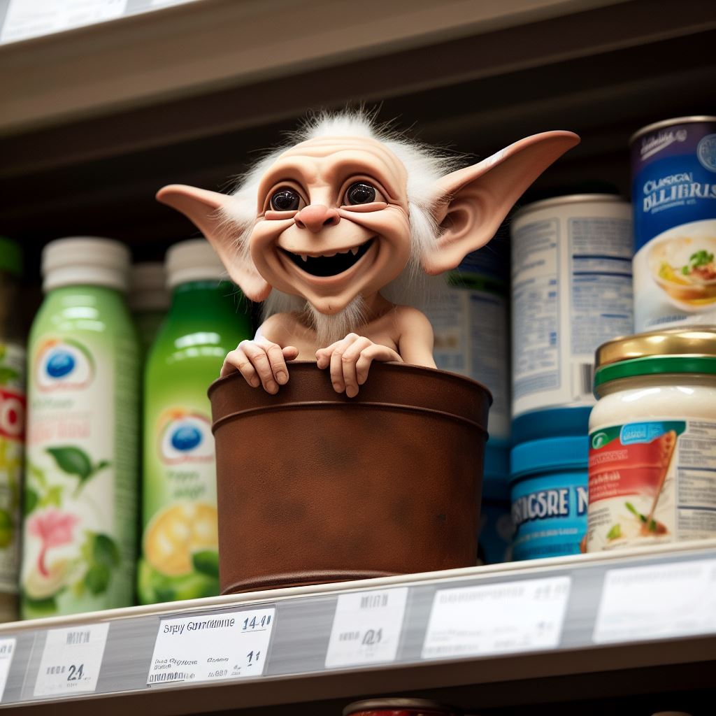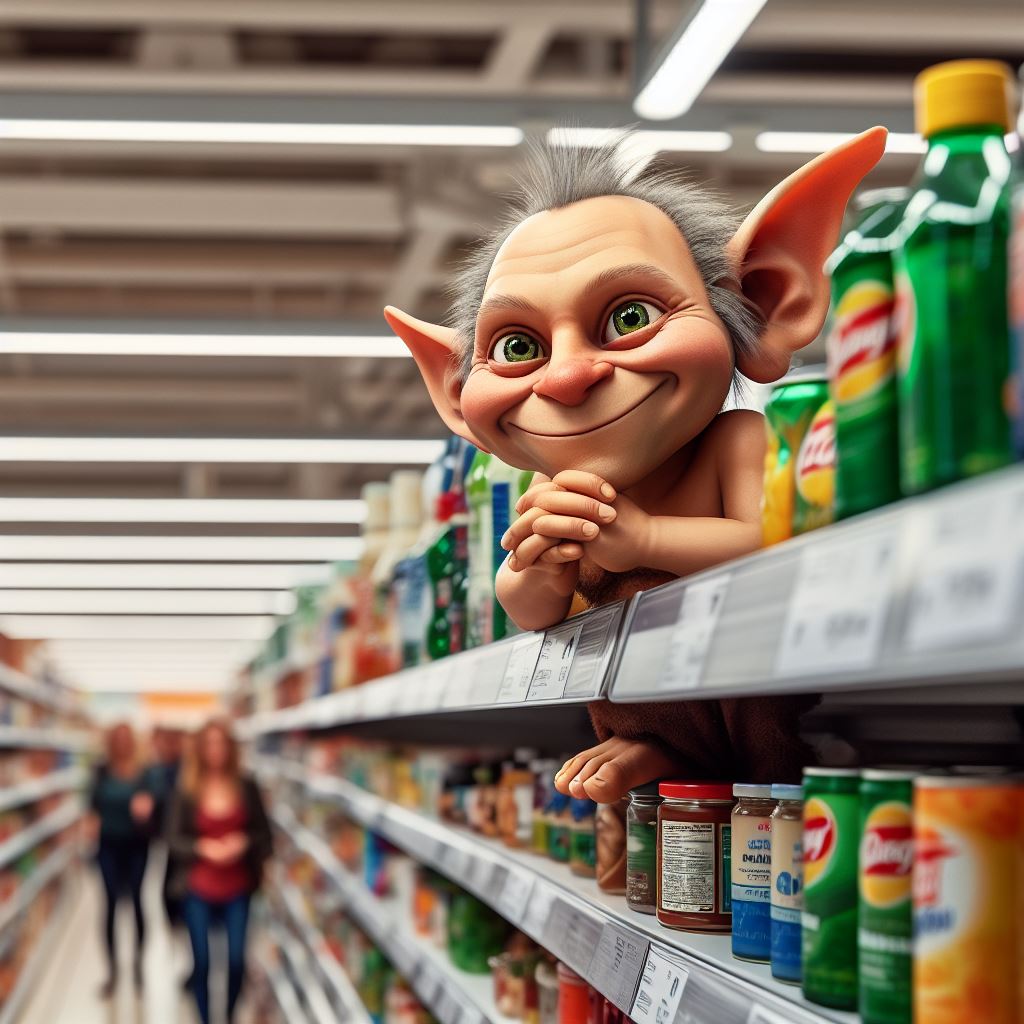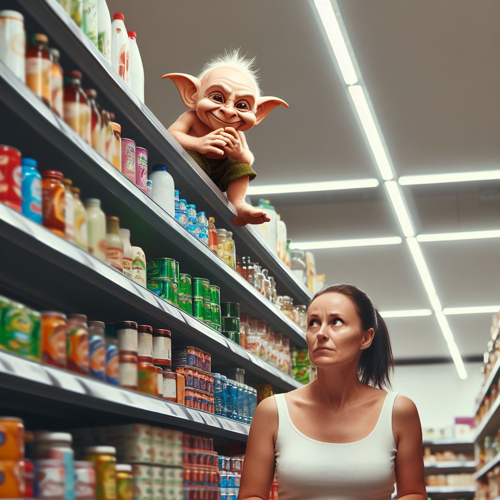 She had a dazed look on her face as she stared into the Chinese sauces and noodles section – the goblin was sitting atop the shelf, giggling to himself.